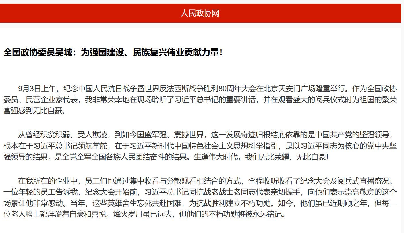 全國政協(xié)委員吳城:為強國建設(shè)、民族復興偉業(yè)貢獻力量!